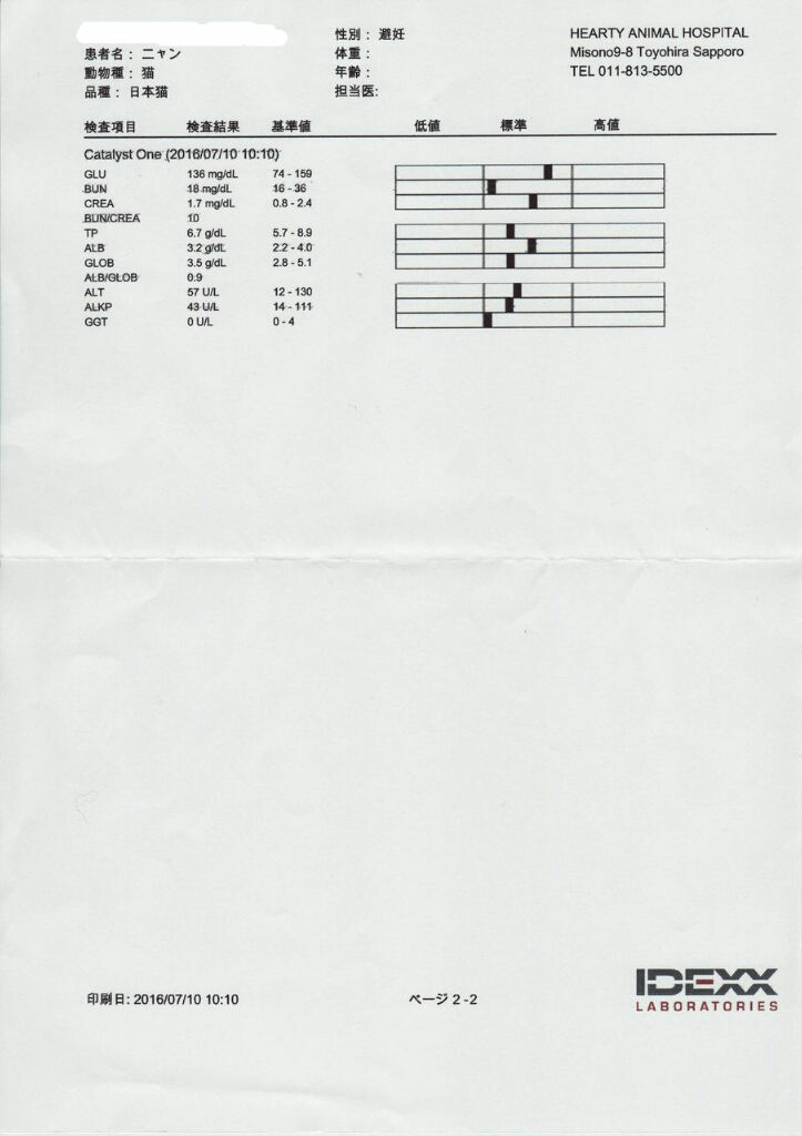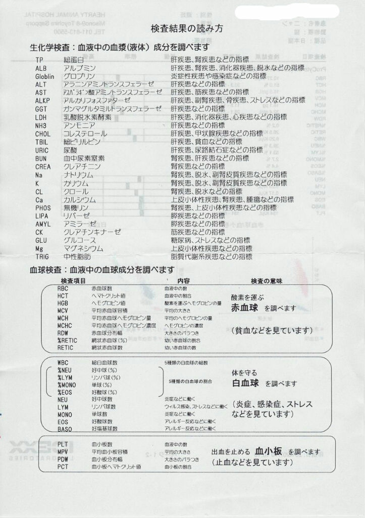 血液検査の結果