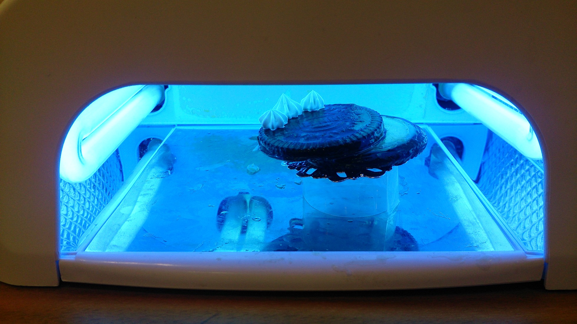 オレオにレジンを数回に分けて塗り、その度に紫外線を当てていきます。