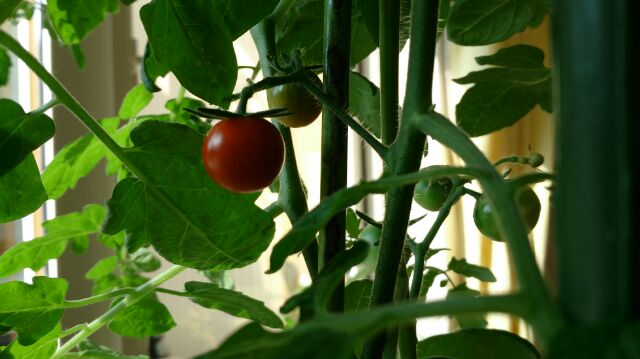 去年の秋から室内で育てているトマトが立派に育ってます(゜ロ゜;ノ)ノ