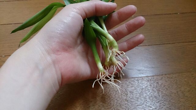 スパイラルバンブーの水挿しをしていたのが、たくさん根が出てきました