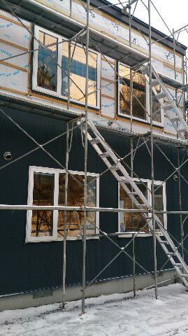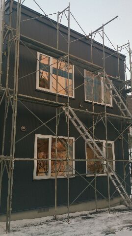 出入口以外の1階部分全て外壁張り終わりました。