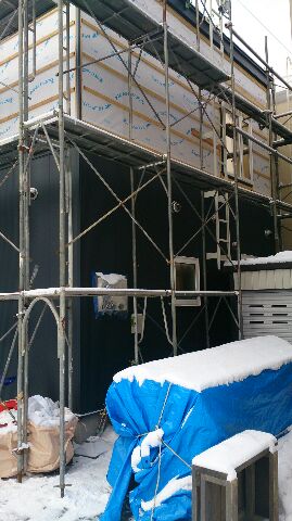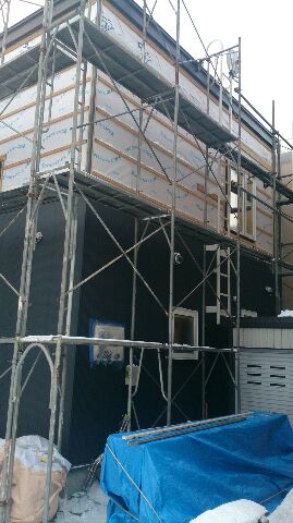 今日は2階部分の外壁を張るようです