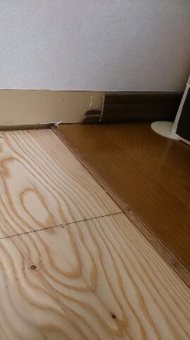 コンパネを貼っている部分の床を剥ぎ、まだまだベチョベチョな断熱材を交換しました。