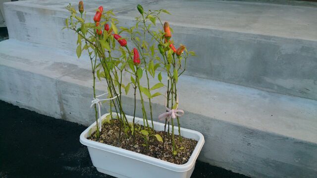 こちらもちらほら唐辛子の実?が出来ています( ´∀`)