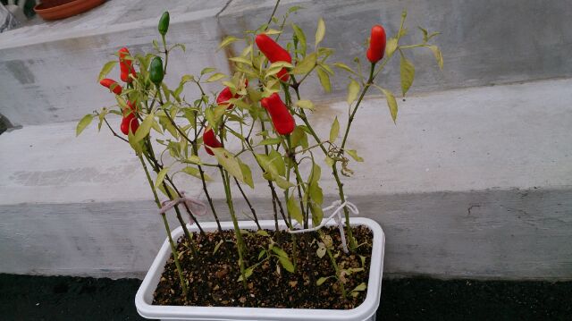 プランターの唐辛子が結構赤くなってきたので、カットして水挿ししてみました。
