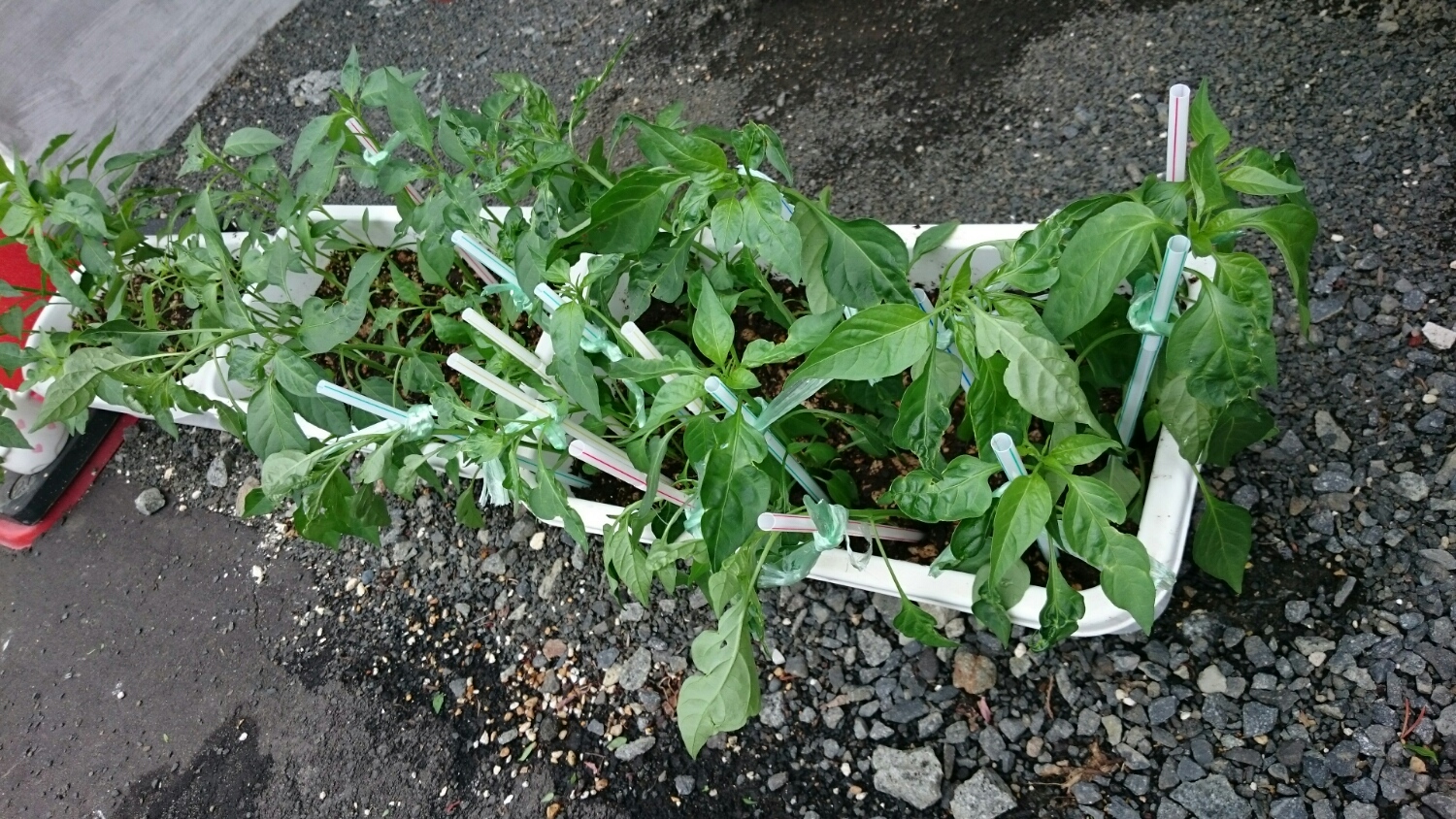 でも移植したら元気が無くなって倒れたので、家にたくさんあって余っているストローを支柱にして起こしました(T-T)